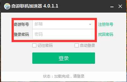 三.登录奇游加速器客户端,输入正确的账号和密码。