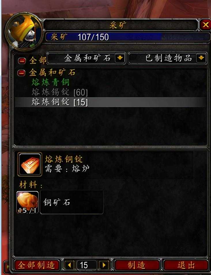 现在相对于采药来说,采矿升级要简单许多。学习采矿之后会给一个熔炼的技能,以前熔炼只能熔炼的80点,而现在没有80点的限制了,前期我们就靠着熔炼来升级,这样就不用到处找矿来挖了。