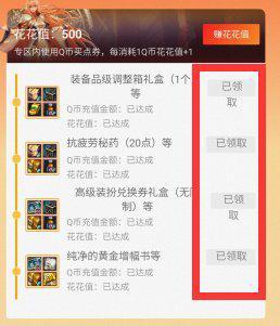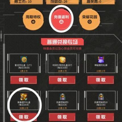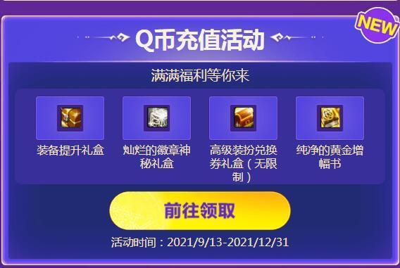 ③点充值返利即可领取你对应充值勇士币(1:1)充值500QB=16个装备提升礼盒。