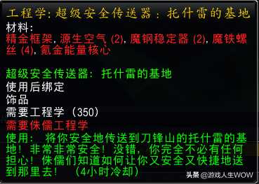 燃烧的远征工程学技能到了一定程度就需要去选择地精、或者侏儒工程学、有一些特定的专业制造品需要选择了其中之一并且做了一系列任务才可以学习制作,例如;传送器
