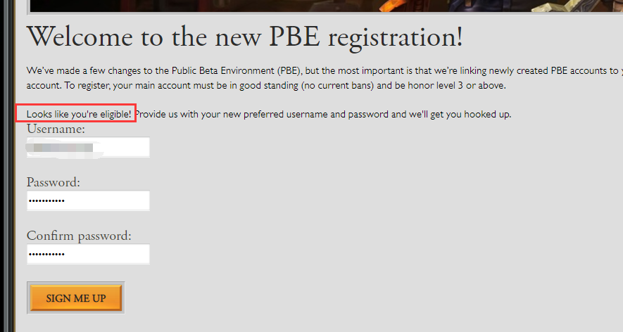 登陆后跳转到以下画面,点击按钮即可查看账号是否有PBE资格。