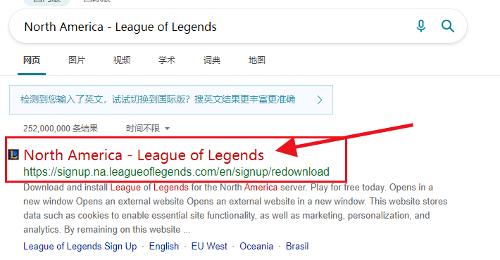 玩家需要先拥有LOL正式服的账号,才能注册PBE账号。玩家输入North America League of Legends并搜索;