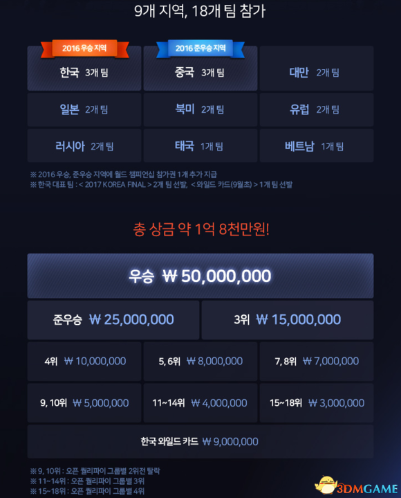 韩国(3队),中国(3队),台湾(2队),日本(2队),北美(2队),欧洲(2队),俄罗斯(2队),泰国(1队),越南(1队)