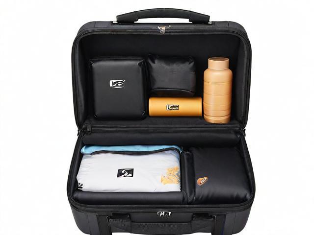 这一个行李箱,这还个拉手,还挺精致的。我打开啊,里面有什么啊,这么多东西啊,打开了啊,诶,看看啊,这应该是做冰块的吧,看到吗?雪山里面的猪,真的野猪啊,这应该是冻冰块的,那个模具可以冻冰块了什么的,还有这个给个杯子喝水的,这玩意也舍不得用啊,给我这个上面印的是摩拉,有摩拉的图标,还有个管把这个装起来啊,这还有东西?这应该是套那个杯子的东西。