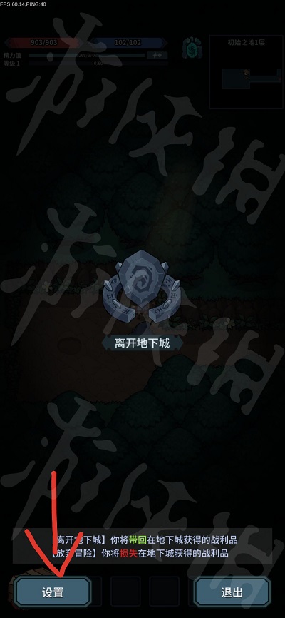首先进入游戏主界面,点击上面标记的位置,启动地牢。