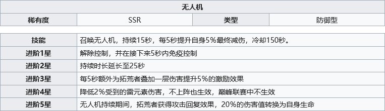 是无人机用的SSR源,实力还可以。可以提供很好的抗性和免控,PVP效果可能会很好。