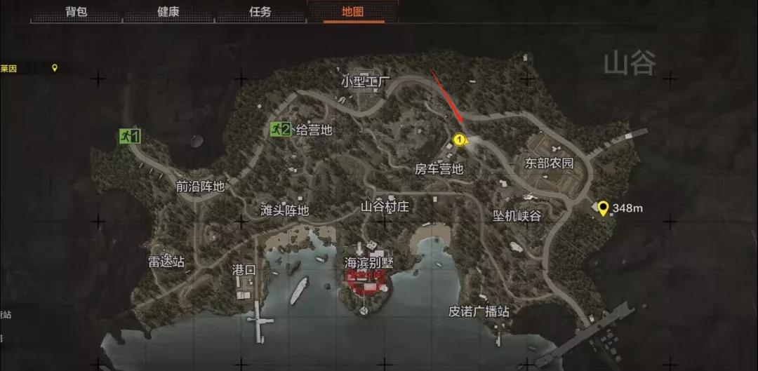 连接房车营地和小工厂的小路所在的区域,堪称整个山谷的十字路口。在房车营地的西南面,有一座可以俯瞰山谷村落、海边别墅等区域的山。姑且称之为狙击山吧,视野开阔。是非常合适的狙击点,也是每个玩家都需要争夺的地方。