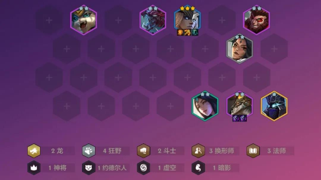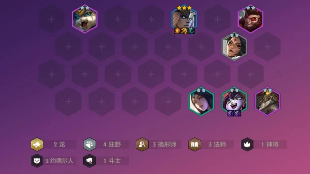 狼涨到七个就随意打野,纳尔换杰斯,阵容初步形成。猴子来了。改变工薪族阵容,成型。然后留在7级提高素质,龙女和露露追三。