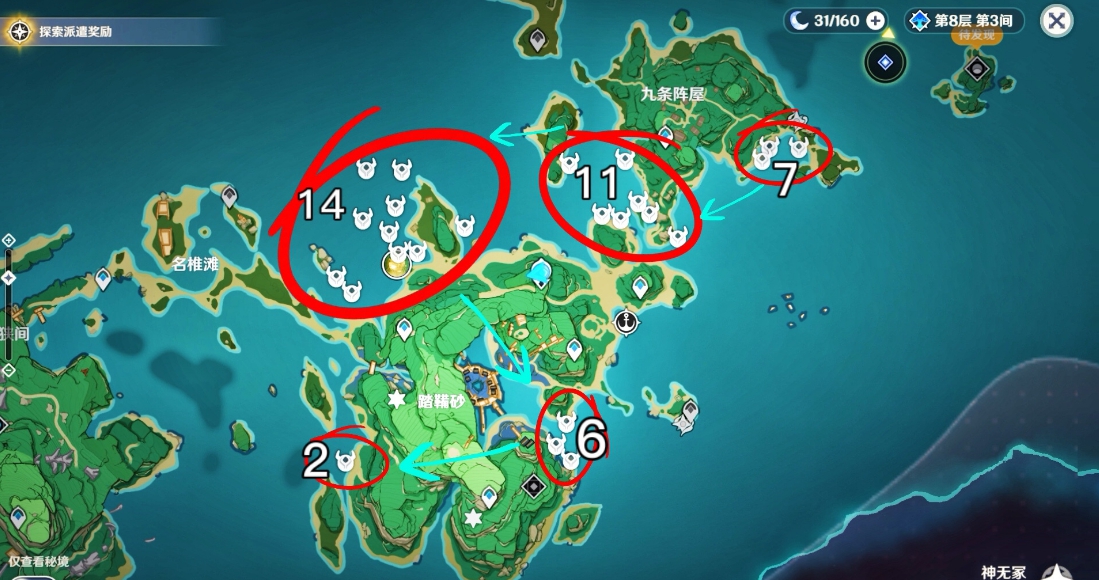 00-1010现在原神2.0饭妻地图上有三个岛(80个海灵芝刷新点)。玩家可以通过收集两次来使叶晚和其他角色充满突破。饭老婆上的特产是海灵芝,两天一刷新(48小时)。