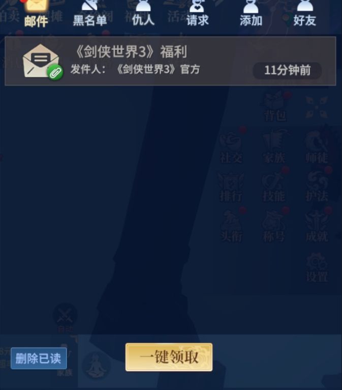 在社交系统中,玩家可以点击屏幕右侧进行社交,进行邮件收集、黑名单查看、敌人查看和删除、好友请求、好友添加、好友号查看等各种操作。