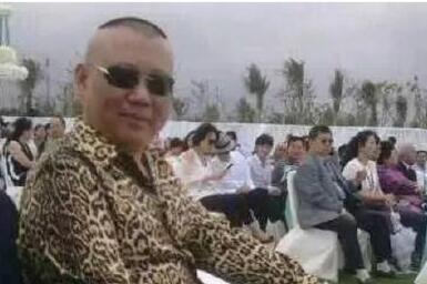 郭德纲穿着豹纹衣服,戴着墨镜。