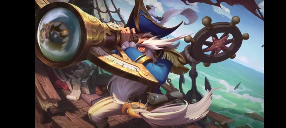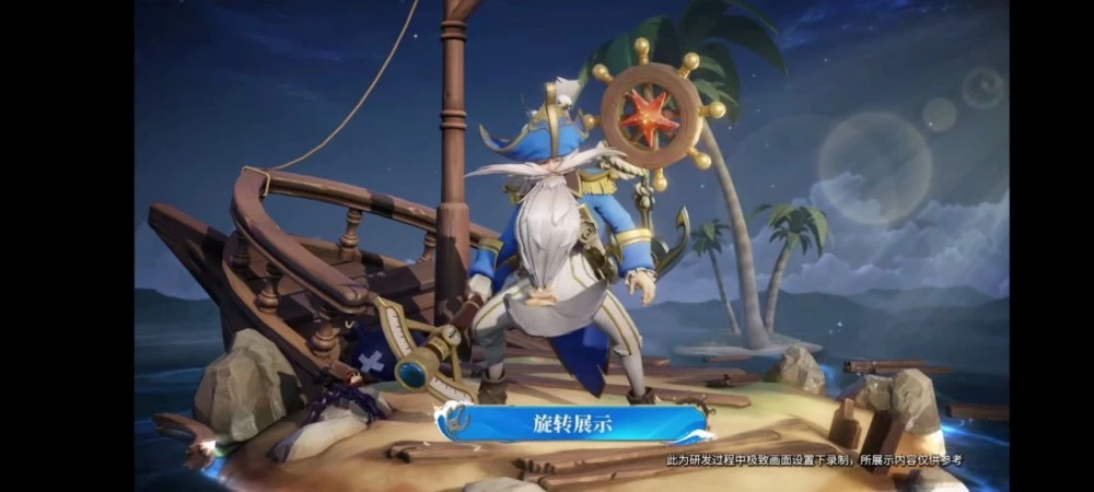 手持武器包含双筒望远镜和测量工具的元素,大招融入了锚和舵的形状。以航海家的服装为基础,提炼运用海洋和鱼类的元素,设计出一个滑稽可爱的航海家形象。
