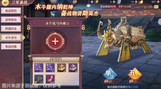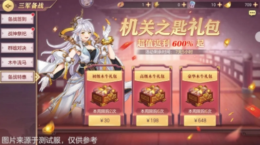 豪华木牛礼包:内含木牛风琴钥匙*60,元宝*6480,售价648元,本周限量6次。