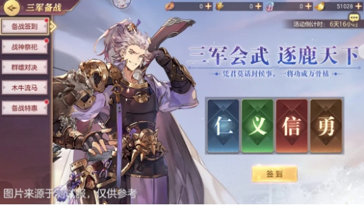 活动期间,每天可以签到一次。签到后随机获得仁、义、信、勇等福报各一份,随机获得木牛钥匙、精石、精石、锻石等奖励。