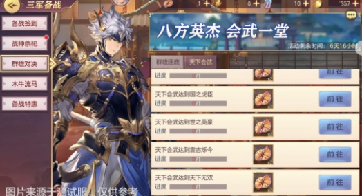 完成包和世界的任务可以获得丰厚的奖励。互相争夺:完成相应战斗后可以获得相应的荣誉勋章奖励。当包在竞争到达相应的位置时,还可以获得木牛机制的相应钥匙;世界武学:完成挑战环节还可以获得相应的武学币。当世界武学到达相应位置,可以获得相应的木牛机制钥匙。