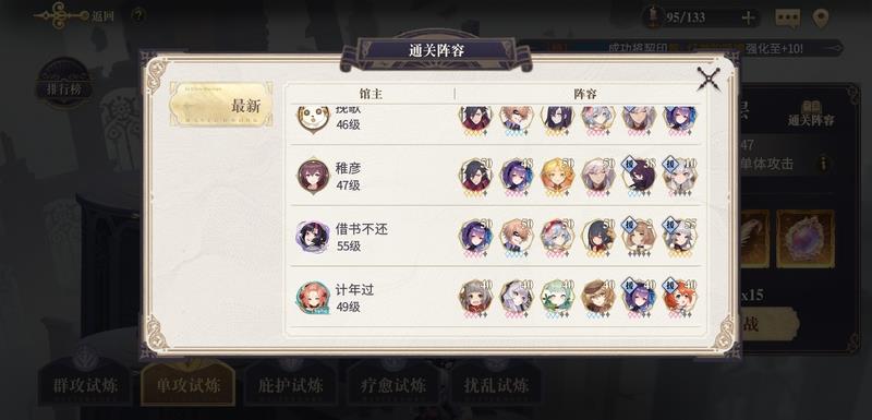 只有慕斯升了40级,丹、白芷、夏洛特都没升40级,工具人夏洛特连契约印都没带。总的来说,丹附加了撕裂效果。慕思持续间接伤害生效时,可以一直扣6000,6000,12000。白芷保证健康血量,夏洛特控制(虽然只控制两轮)。