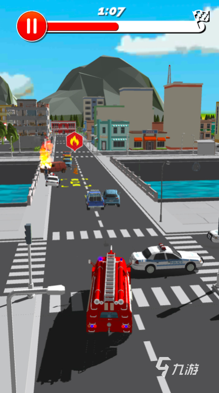 一款可以驾驶消防车的游戏,这款游戏不像其他游戏那样,玩家能够前往火灾现场救火,玩家的任务是驾驶消防车,把车平稳的停放在安全位置上。游戏看似简单,其实一路上困难重重,碰到一个路障就算失败。
