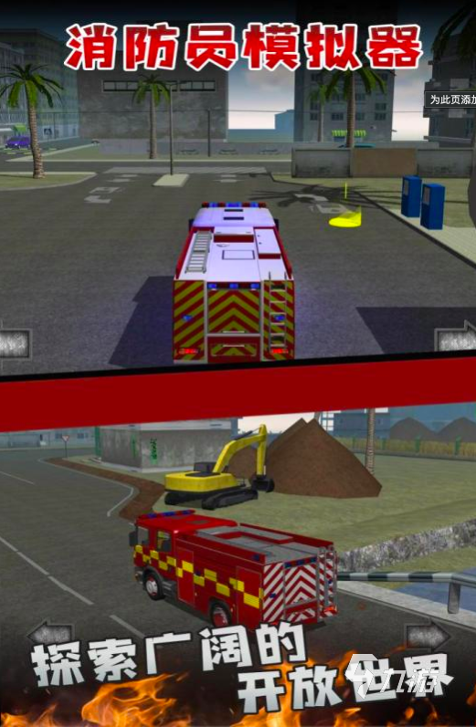 一款可以扮演消防员的模拟类游戏,玩家在这款游戏当中可以驾驶消防车探索广阔的开放时间。一共有多种消防车等待玩家使用,除了消防车之外,玩家还可以驾驶消防用直升机扑灭大火。