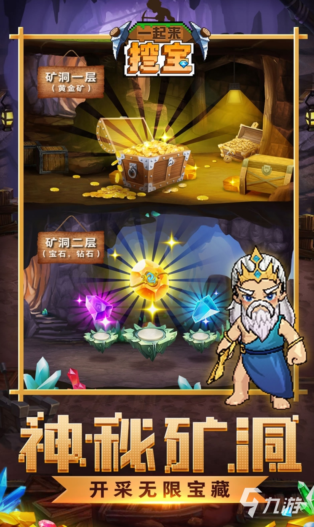一款经典挖矿寻宝冒险手游,这里有非常富饶的矿洞,海量矿石和极品道具等着你来探索,你可以在这里获得海量玩伴,超高的必中概率让非酋也可以获得抽卡的快感,放置即可获得经验,还有丰富的剧情等着你来解读。