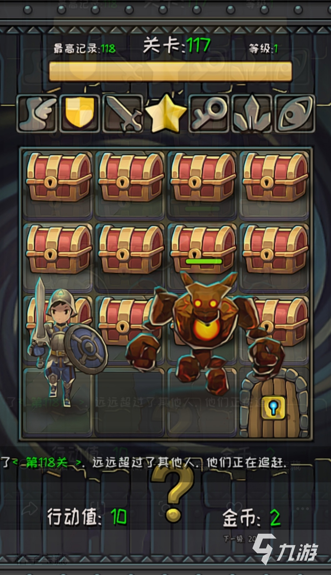一款免费的寻宝小游戏,玩家需要控制角色不停走动,在走动的过程中难免会遇上怪物,玩家需要拿起手中的武器,去击败怪物,最终拿到钥匙开启宝箱。这里有各种各样的游戏关卡等着你来挑战,还可以获取随机卡片哦。