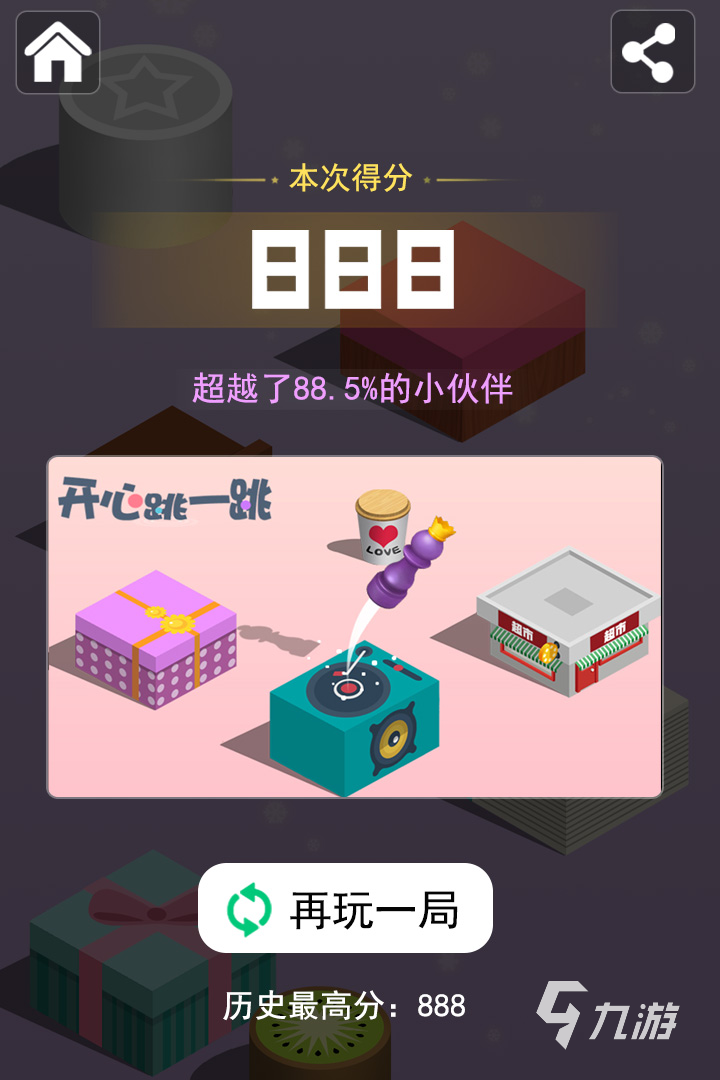 《开心跳一跳》这款游戏的游戏玩法简单,玩家只需按住、松开、重复此动作即可体验游戏的乐趣,但是你能在游戏中跳多远取决于玩家的直觉。