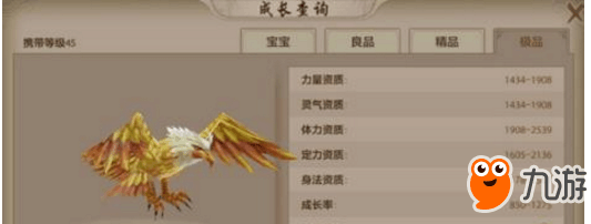 鹰:45级可以携带,玄武岛捕捉,平衡型体力珍兽。
